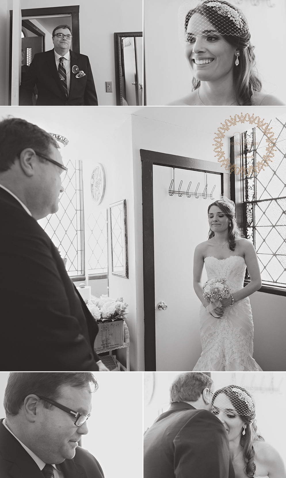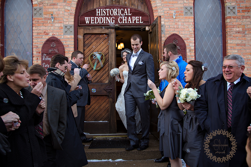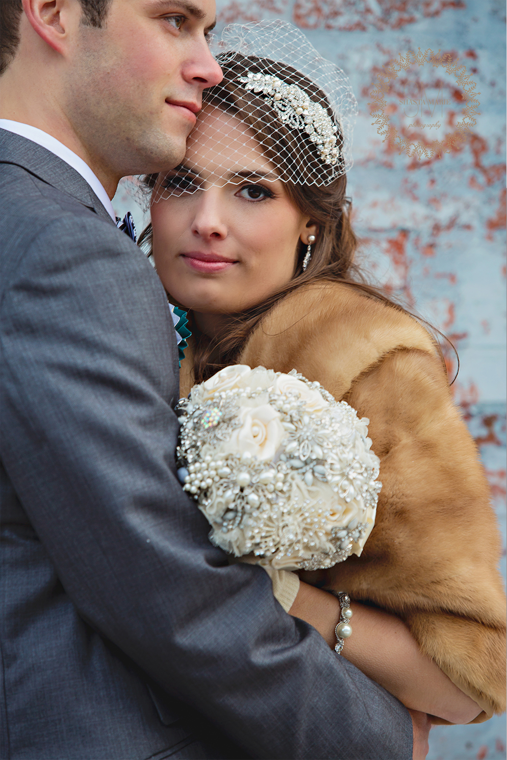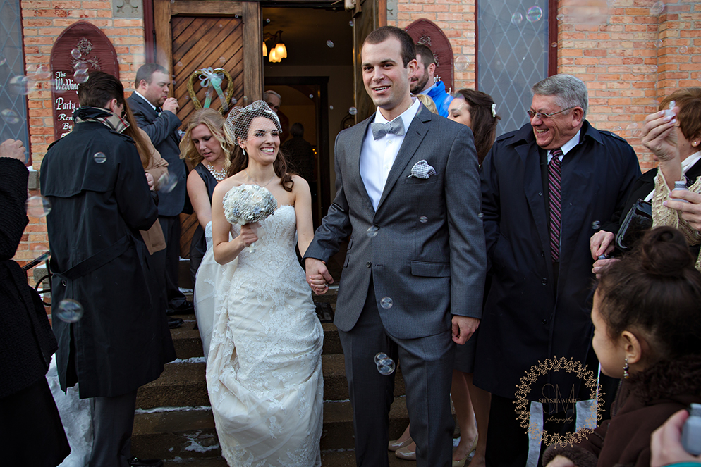 Everything about their wedding day was magical. The fresh falling snow turned the day into a beautiful winter wonderland. Mitch and Nicole read their vows and shared their love for each other in front of family and friends at All Saints Wedding Chapel located in the charming, historic downtown Howell. The chapel was filled with a warming glow from the sun light seeping in through the stained glass lancet windows. Nicole looked absolutely stunning! She wore a gorgeous, elegant, lace dress with a birdcage veil and her smile was so infectious that you couldn’t help but smile when you were around her. Nicole choose to share a first look with her father before the ceremony, and it is moments like these that make my tears flow. I am such a daddy’s girl and live for these moments.